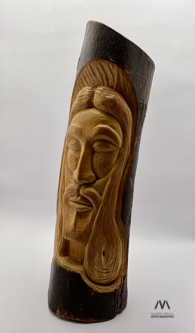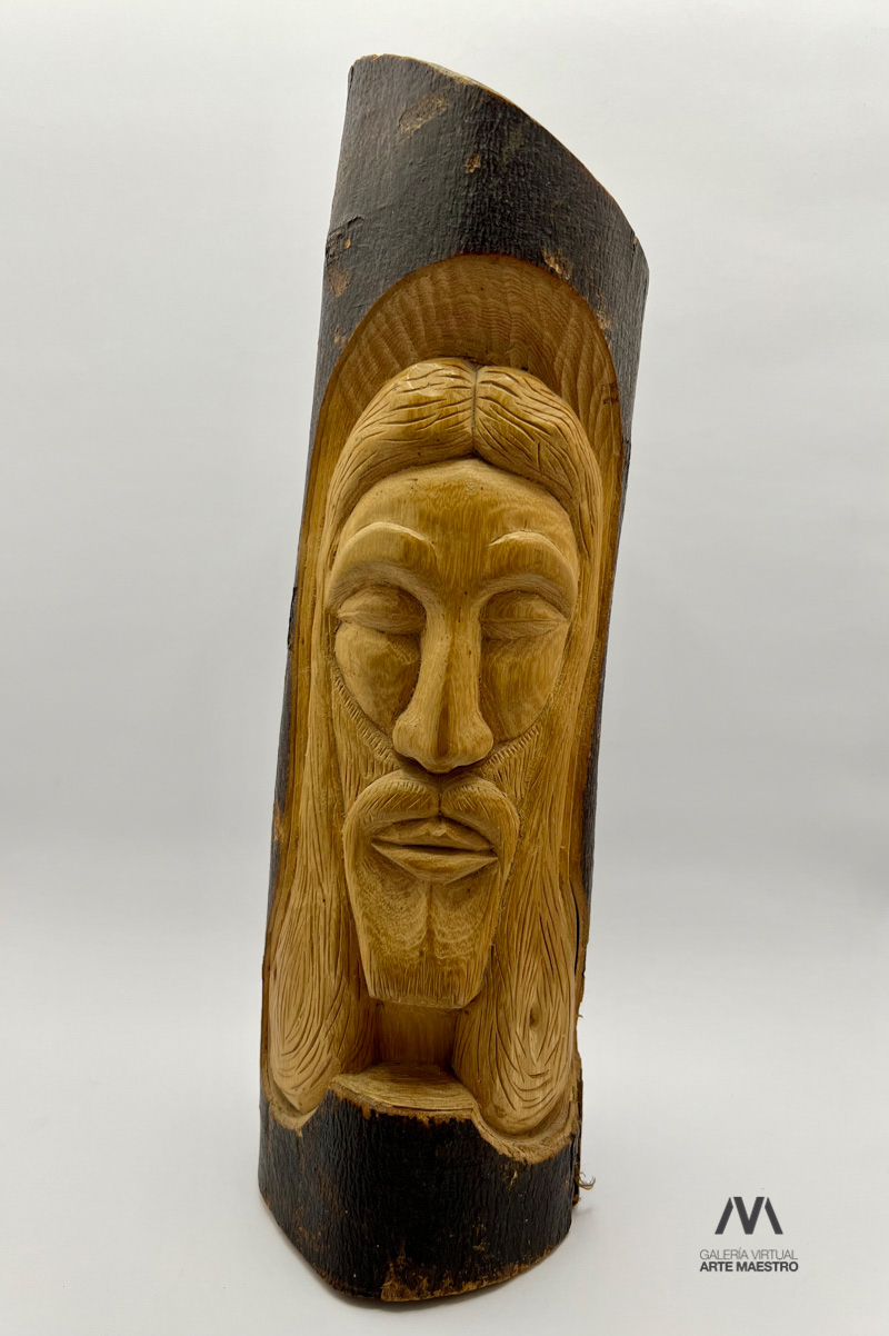 El Cristo tallado en tamarugo, es una obra de carácter religioso que muestra el rostro de Jesús en actitud de oración, como si estuviera a punto de salir del tronco. El tallado en madera resalta la expresión de devoción y sufrimiento de cristo con gran detalle y delicadeza.